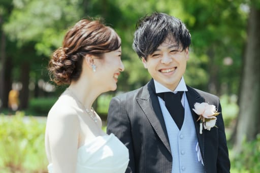 ご新婦様を見るご新郎様の笑顔が素敵! 天気も晴天でよかったです!