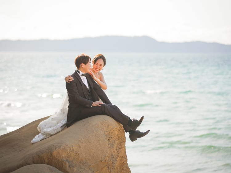 わんちゃんと海で一緒に撮影したい とご希望だったおふたりは、 人気スポット奈多海岸で撮影することに決定。