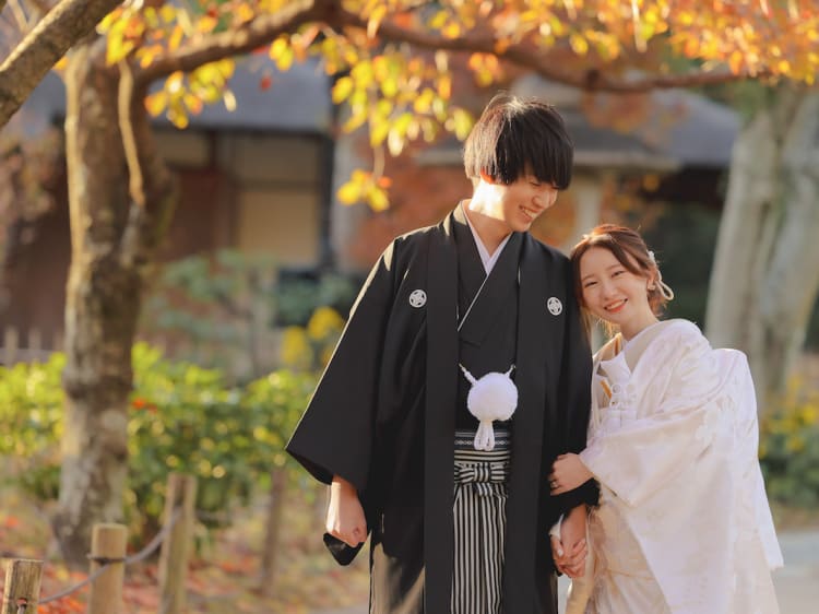 和装も日本庭園で 紅葉を背景に撮影することができ、 大満足の一日に。