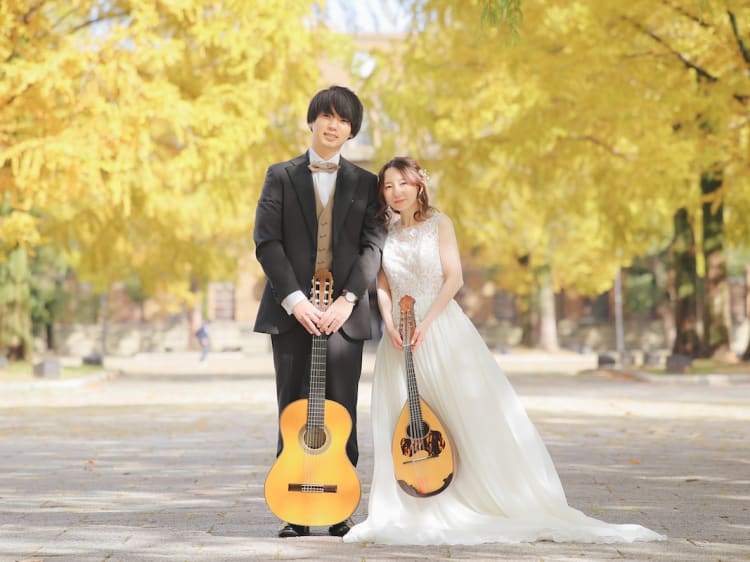 「共通の趣味や好きなもので 自分たちらしく撮影したい」と 考えていたおふたりは、 ギターとマンドリンを持参して撮影に。