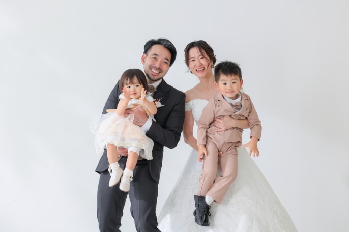 洋装は家族みんなで、和装はふたりきりで、 と2つのプランで撮影したおふたり。