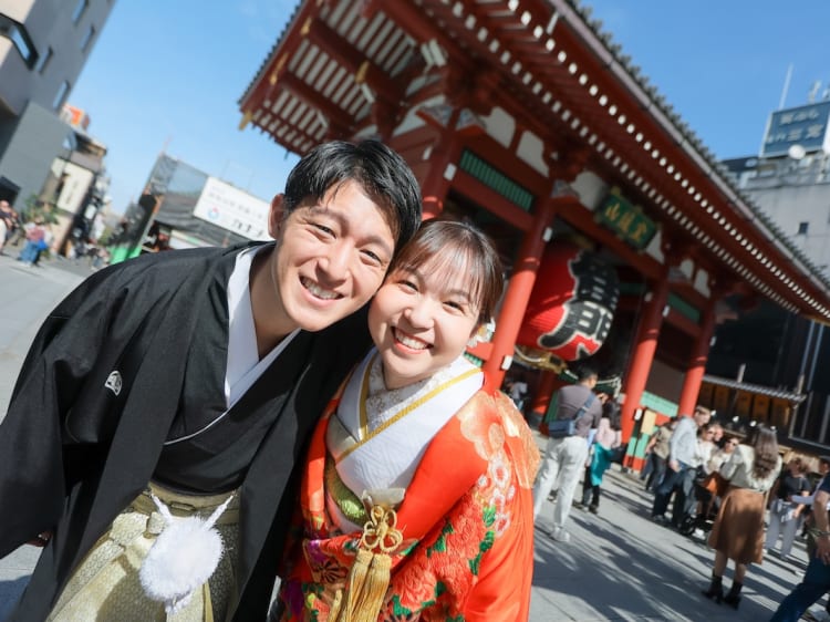 おふたりはご友人の紹介で相談会へ。 当初スタジオ撮影も迷っていたものの、 より自由度高くおふたりらしさを残せるようにと 浅草でのロケーション撮影に決定。