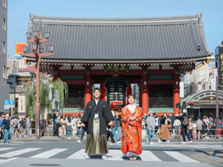 浅草を象徴するスポットや おふたりの思い出の場所を巡って撮影。