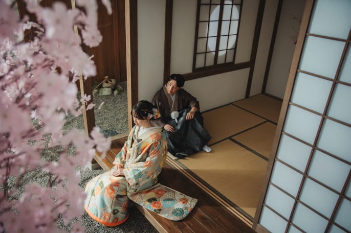 横浜みなとみらい店人気No.1。本格的な茶室スタジオで撮影する、和装の結婚写真