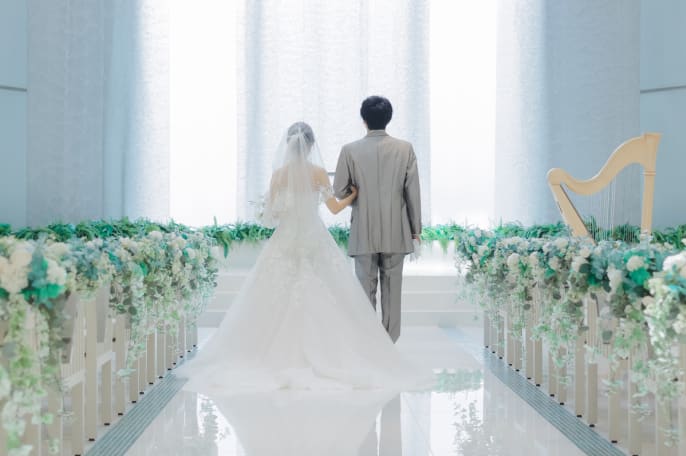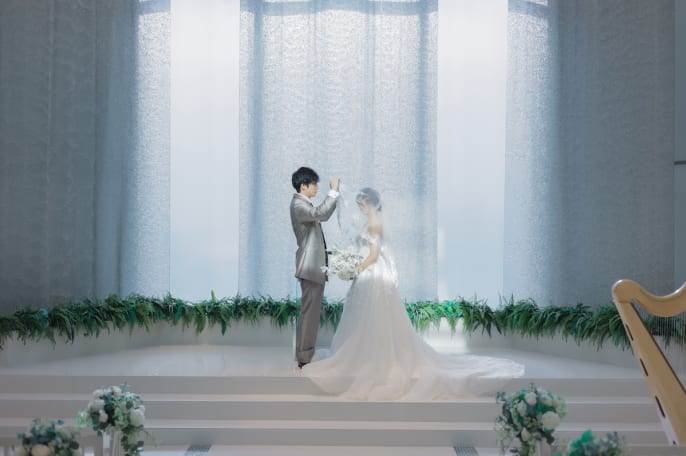 挙式シーンの撮影が希望で、 撮影場所を検討されていたおふたり。 プランナーの提案した チャペルロケーションの新プランが おふたりのイメージと合致。