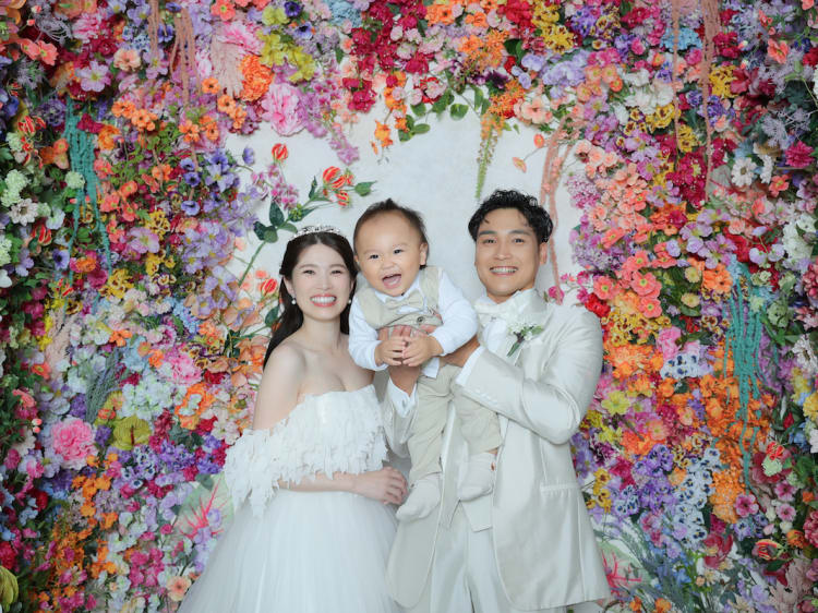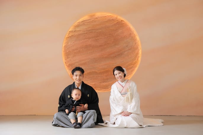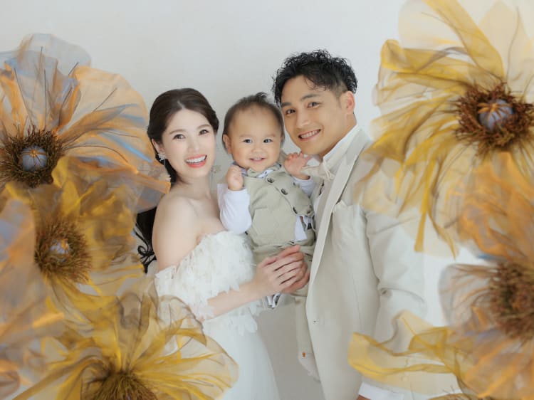 おふたりでのウェディングフォトと、 1歳のお子様とのファミリーフォトがご希望で、 お子様の衣装も和装・洋装と それぞれ揃えて撮影に。