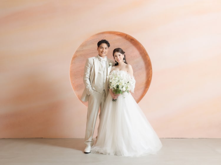 名古屋駅前店の月の壁と ジャイアントフラワーに惹かれ、 ハウススタジオでの撮影を選んだおふたり。