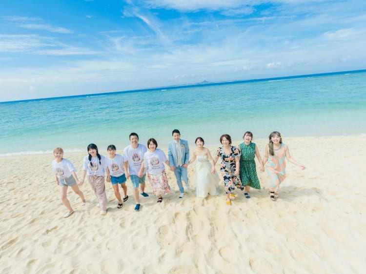 ノリの良いご家族と、 全員で海に入ったり手を繋いだりしながら、 家族フォトもしっかり。