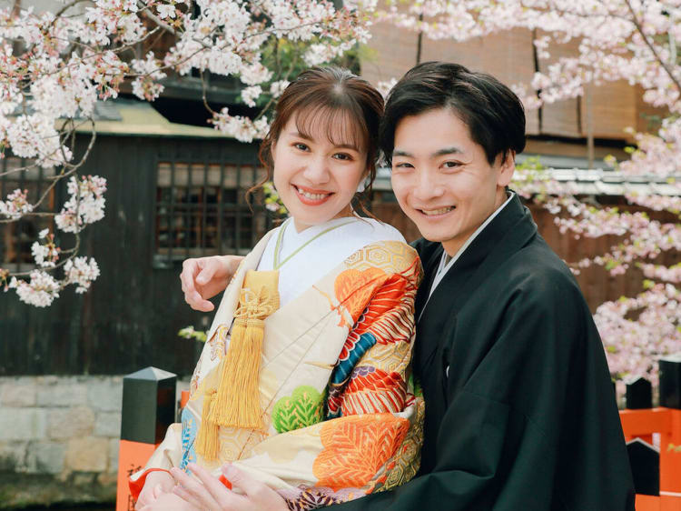 春の祇園を歩きながら 桜と残すウェディングフォト