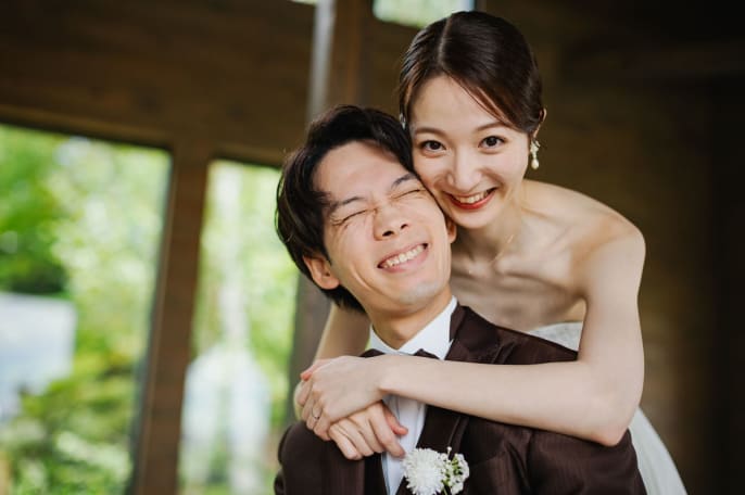 フォトウェディングを ご家族にも見てほしい、と 旅行も兼ねて招待し 北海道で撮影したおふたり。