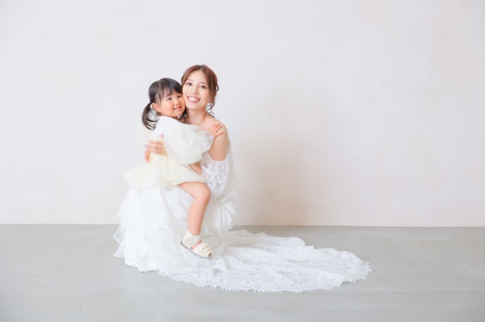お子様とは持参いただいたおもちゃ等を使い最初にしっかりコミュニケーションをとって、ソロショットからスタートし、楽しい気持ちのまま撮影に入れるようにしました。おふたりの写真だけでなく、お子様との写真もたくさん残せたことに、大変満足していただけました。