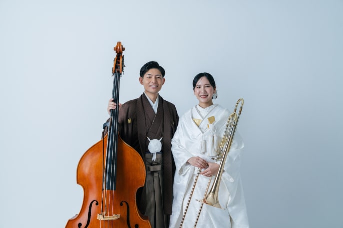 学生時代からの相棒である、 楽器との撮影を希望したおふたり。