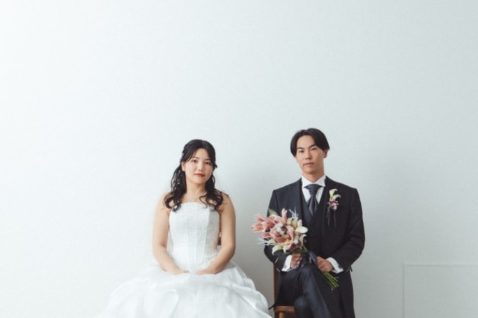 海外在住のおふたりは、 一時帰国のタイミングでの撮影をご希望。 スケジュール調整しやすく自由度の高い スタジオで洋装撮影をすることに。