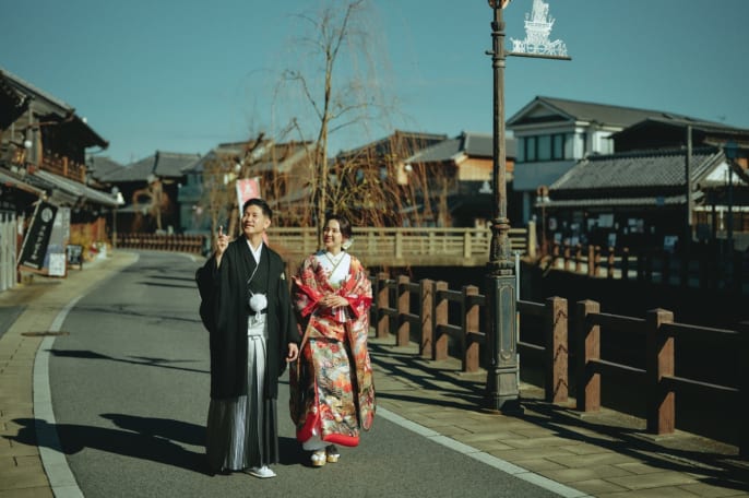 海外在住のおふたりは、 日本の文化や歴史を感じられるような場所で 撮影したいとご希望。