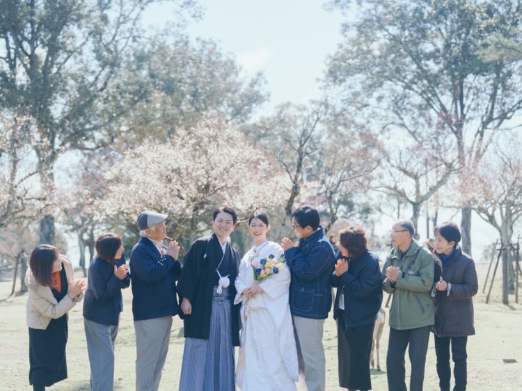 別日には新婦様の地元・奈良での 和装撮影を行い、 2日間にわたって特別な思い出を残しました。