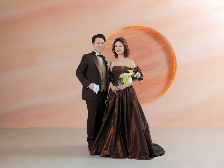 「カラードレスでの撮影がしたい」 というご希望で、 ハウススタジオでの撮影を選んだおふたり。