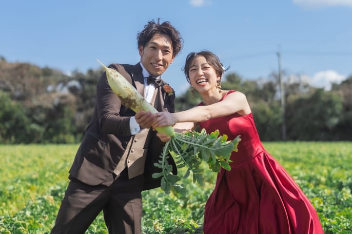おふたりが撮影場所として選んだのは、 ご実家の農園という特別なロケーション。