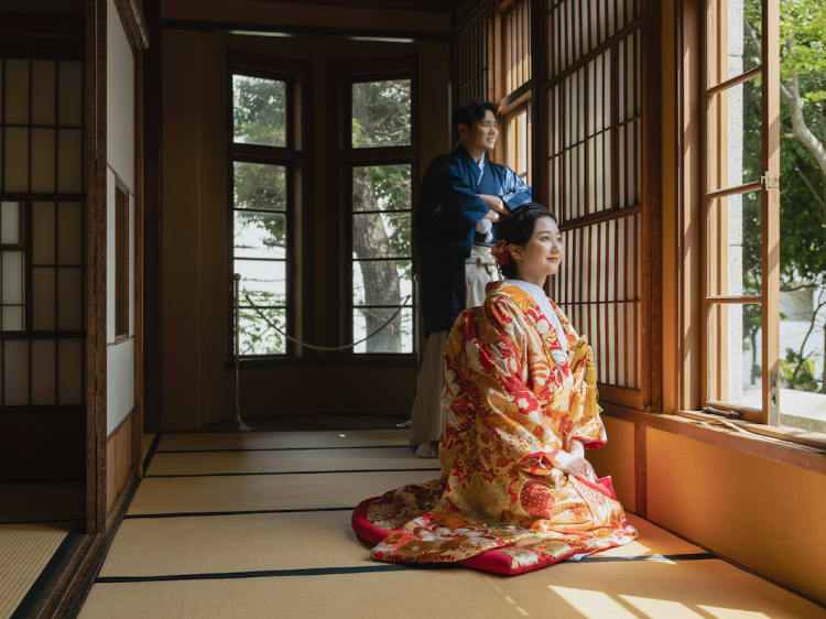 「ここが好き」という直感を大切に、 旧神谷傳兵衛稲毛別荘での撮影に決定。 色打掛と白無垢+綿帽子と 盛りだくさんのプランに。