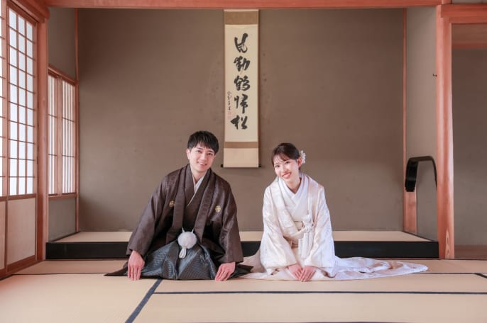 緑の庭園やお茶室でも撮影を行い、 和装ならではの美しい風景を たっぷり楽しみました。