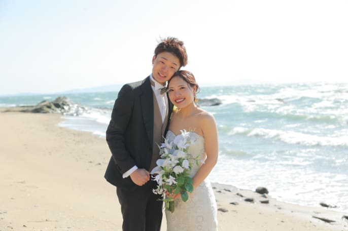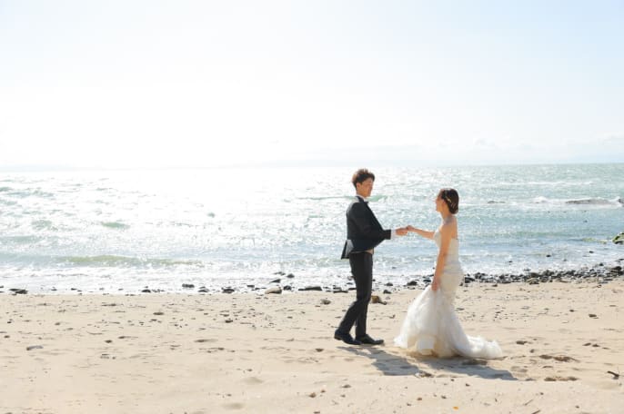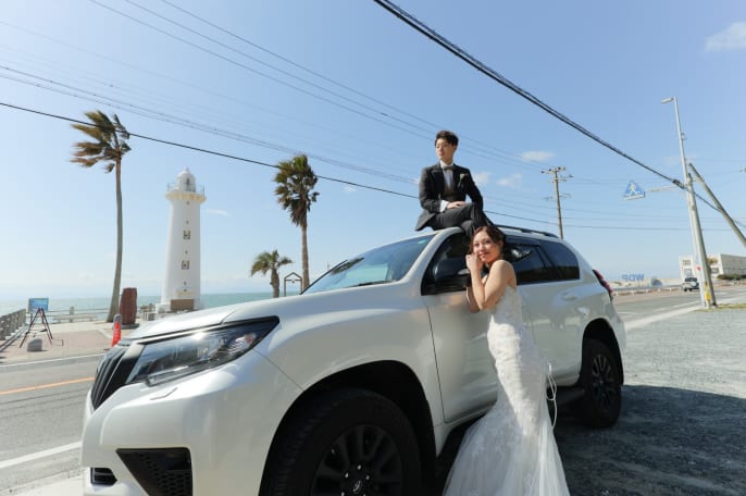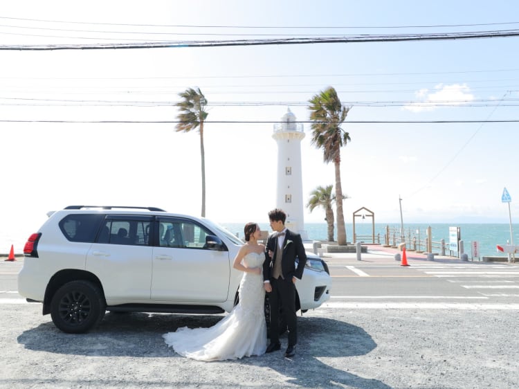「愛車と撮影したい」 と希望のあったおふたりは、 愛知・野間灯台での ロケーションフォトをセレクト。