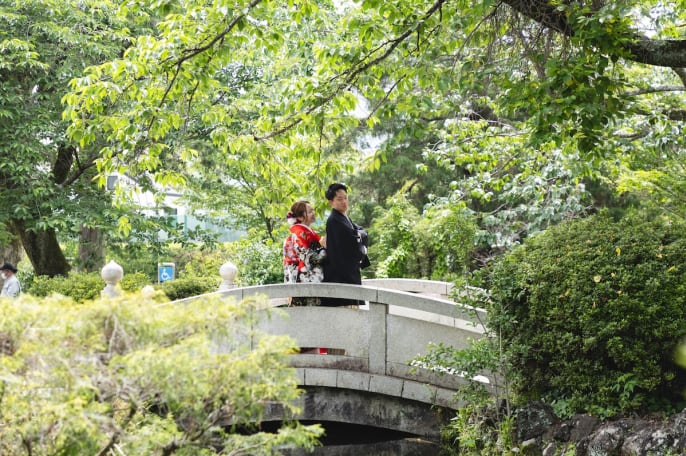 四季折々の自然が美しい神社内での撮影。桜シーズンにもおすすめです。