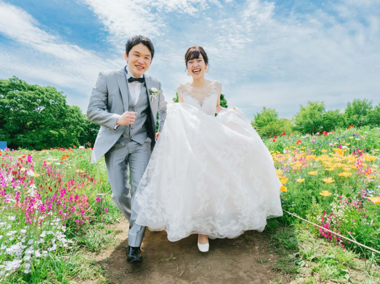基本的にはすべておまかせとのことだったので、いろいろとご提案しながらの撮影でした。季節のお花をいかにきれいに写しつつ、あくまでもおふたりが主役になるよう意識して構図などを決めました。撮影後、指名してよかったと仰っていただけて嬉しかったです。