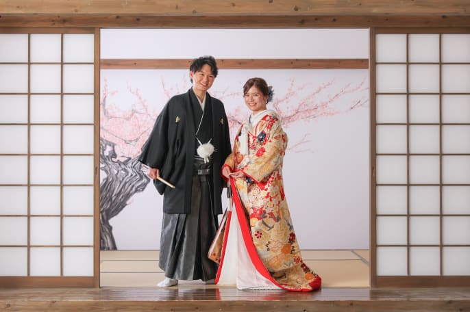 横浜みなとみらい店人気No.1。本格的な茶室スタジオで撮影する、和装の結婚写真