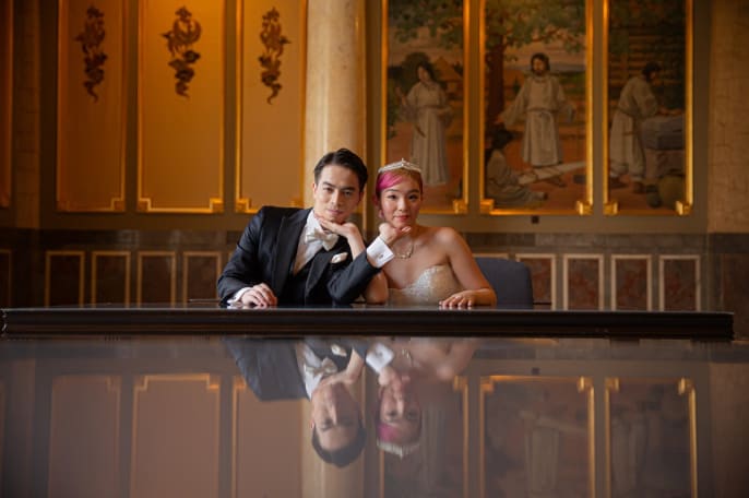 大阪市中央公会堂 特別室を 撮影場所に選んだおふたり。