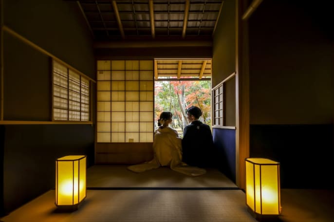 奈良らしいロケーションを満喫しつつ、 やわらかな秋の光と鮮やかな紅葉に包まれて、 穏やかで季節感あふれる一日に。