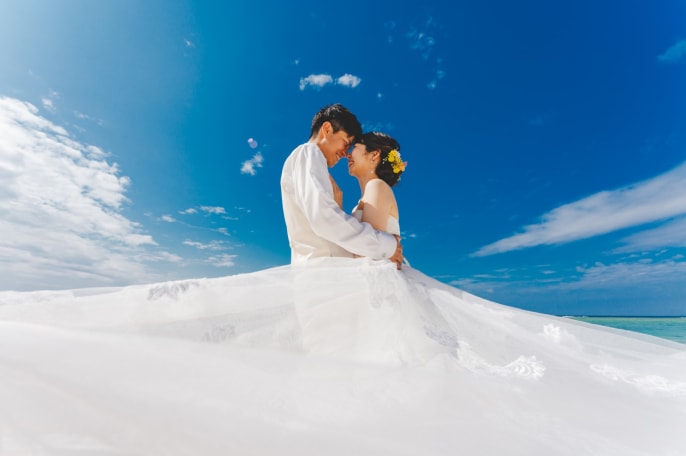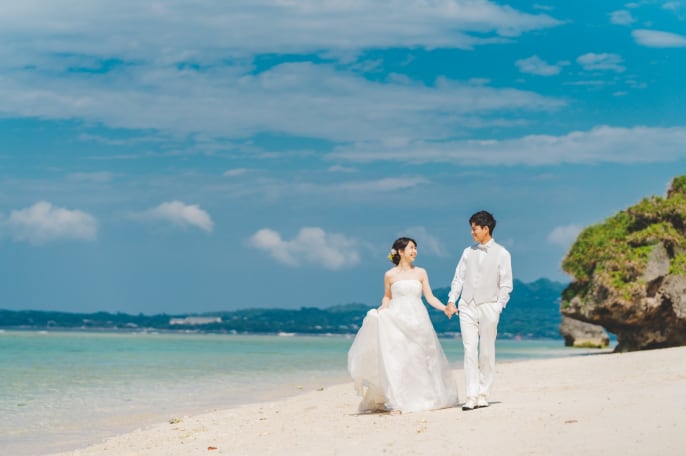 「海も緑も撮りたい」「子供との写真もたくさん残したい」と ご希望のおふたりは、旅行も兼ねて 沖縄でのリゾートロケーション撮影に決定。