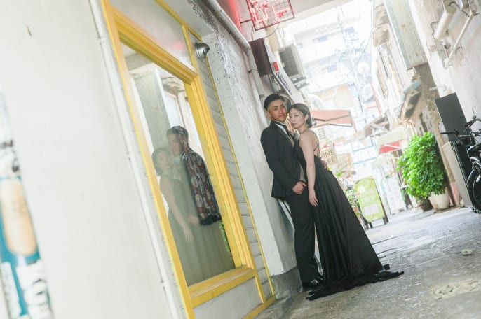 相談会の前から気になっていたブラックドレスに、 シックなタキシードを合わせ、 オシャレな装いで街へ繰り出したおふたり。