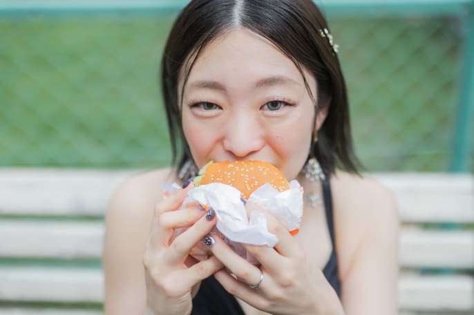 ブラックコーデ× ハンバーガー
