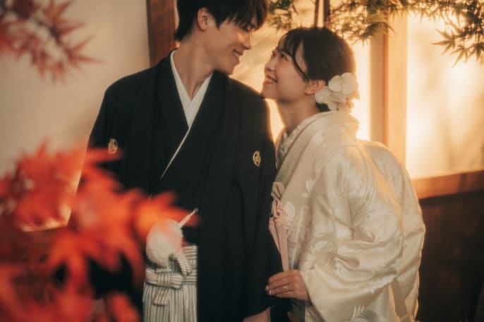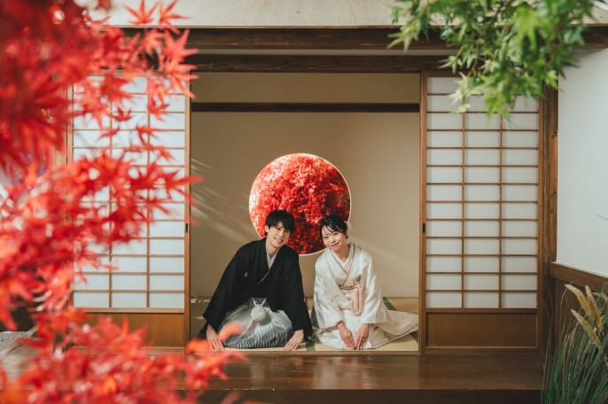 本格的な茶室スタジオで撮影する、和装の結婚写真