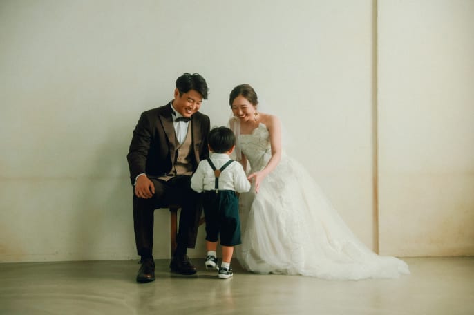 「結婚当初に式を挙げていないので、 結婚の記念を形に残したい」といらしたおふたり。 ふたりの写真はもちろん、当日は お子様や親御様も一緒に撮影することに。