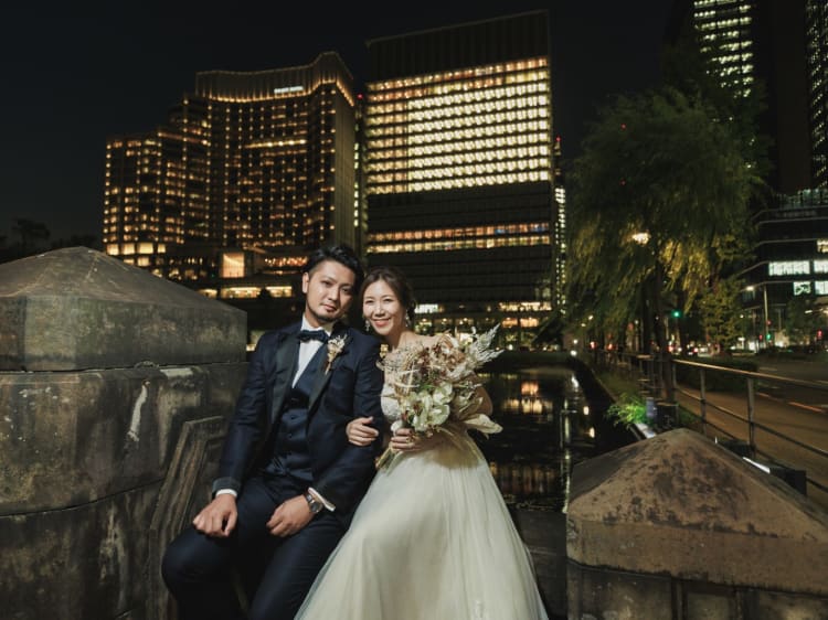 大人っぽく落ち着いた、かつ 自然な雰囲気の写真がご希望だったおふたりは、 東京周遊ロケーション撮影をセレクト。
