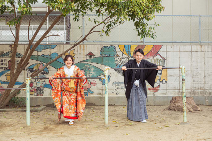 「とにかく楽しく撮影したい!」 とご希望だったおふたりは 大阪を象徴するスポットを巡る 『大阪ぐるりロケーション』をセレクト。