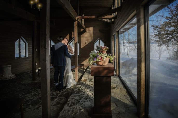 南の土地福岡からやってきたおふたりにとって、この撮影の日が初めて経験する北海道の冬になるのだと思いました。そのため、おふたりが最初に経験したマイナス16℃の世界をいつまでも思い出せるように、「寒さ」を感じるような流れをつくって撮影していきました。