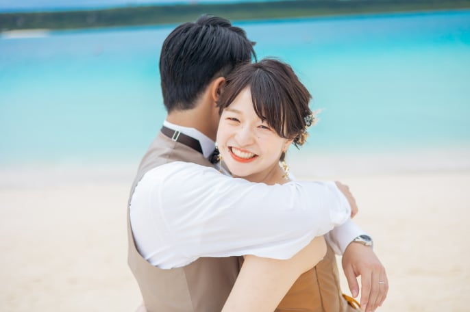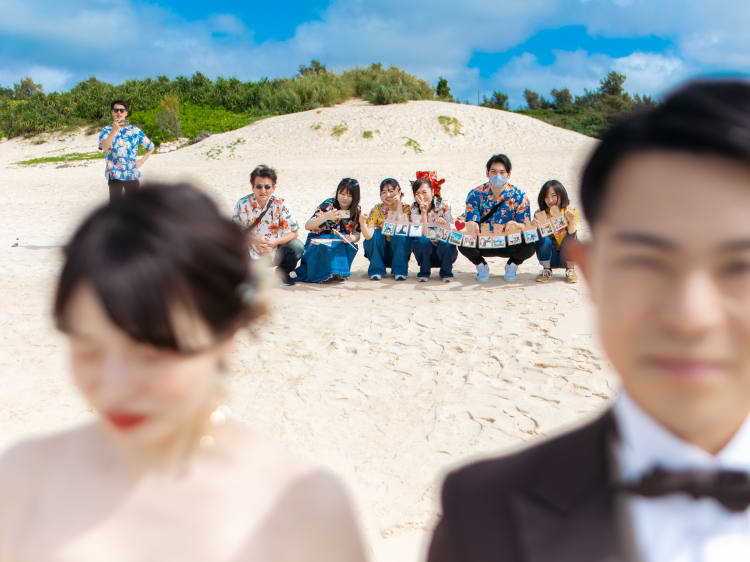 お姉様から「妹の大好きな叔父一家をサプライズ登場させたい」と依頼がありました。見晴らしの良いビーチでどうすればサプライズができるか考え、海をバックに後ろ姿を撮影するシーンで登場していただきました。悪天候の予報でしたが、ビーチでは晴れ間も見え、家族の愛にふれて私たちも幸せな時間でした。