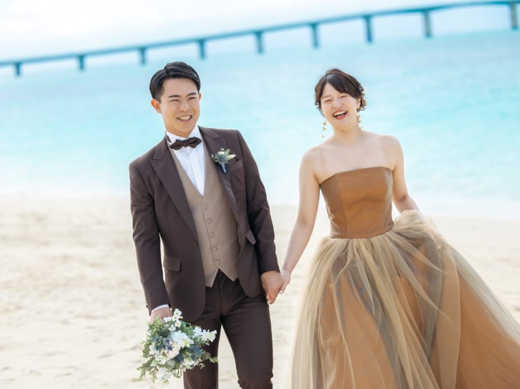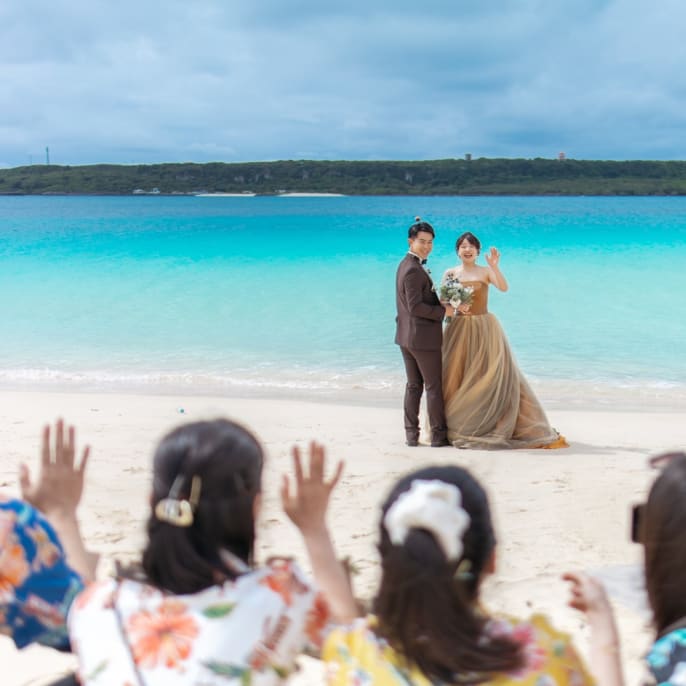 宮古島の美しい海を背景に 家族ウェディングフォト