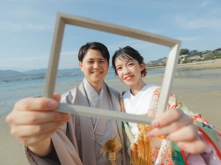 人気のフォトスポットでの撮影のほか、 町並みや海、穏やかで美しい景色を 背景にしての撮影も。