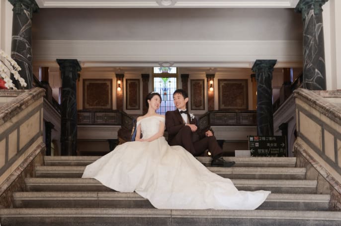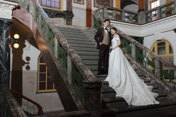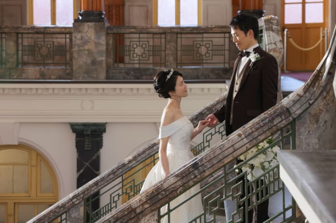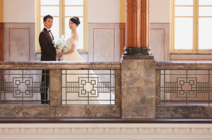 フォトウェディングの撮影場所として、 名古屋市市政資料館を選んだおふたり。