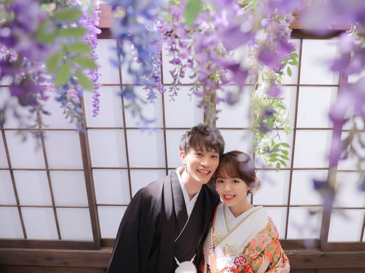 本格的な茶室スタジオで撮影する、和装の結婚写真