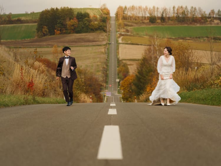 北海道らしい雄大な自然の雰囲気が気に入り、 パッチワークの丘や牧場で撮影することに。