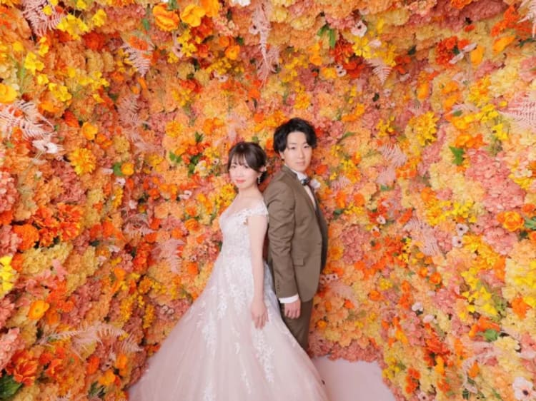 チャペルスタジオでは、ベールを付けていただき神聖なイメージをメインで撮影しました。スタジオの大きな窓からは歴史の残る広島の街並みが見渡せるのでおすすめのスポットで、天気が良かったので窓際での撮影も行いました。 お花が好きなのだそうで、ハウススタジオのフラワーボックスもとても喜んでいただけました。