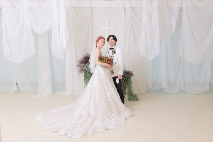 結婚記念にフォトウェディングを選んだおふたりは、 雰囲気が気に入ったハウススタジオと チャペルスタジオでの撮影に決定。