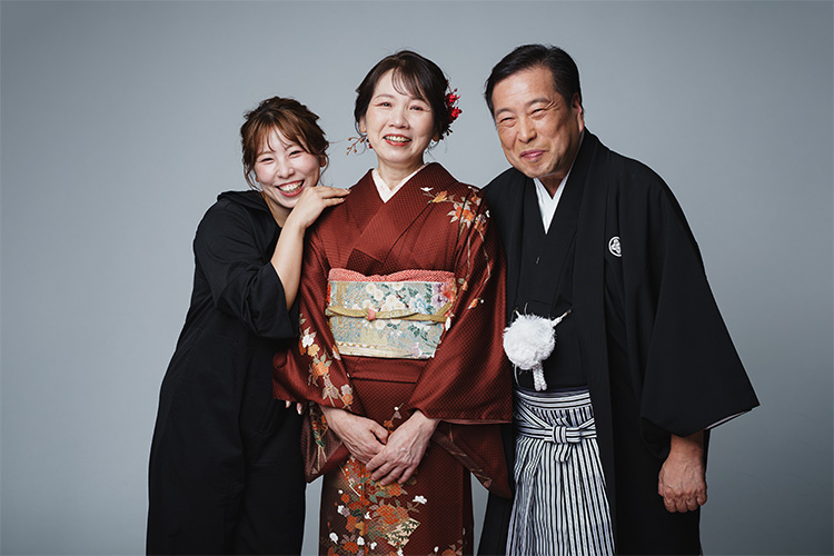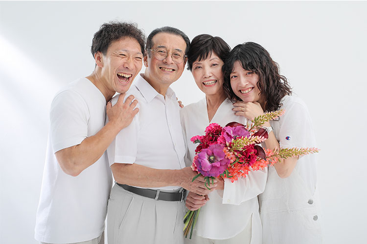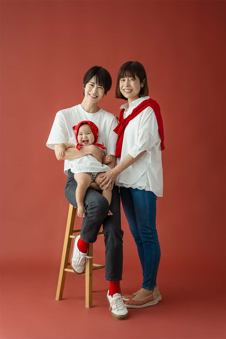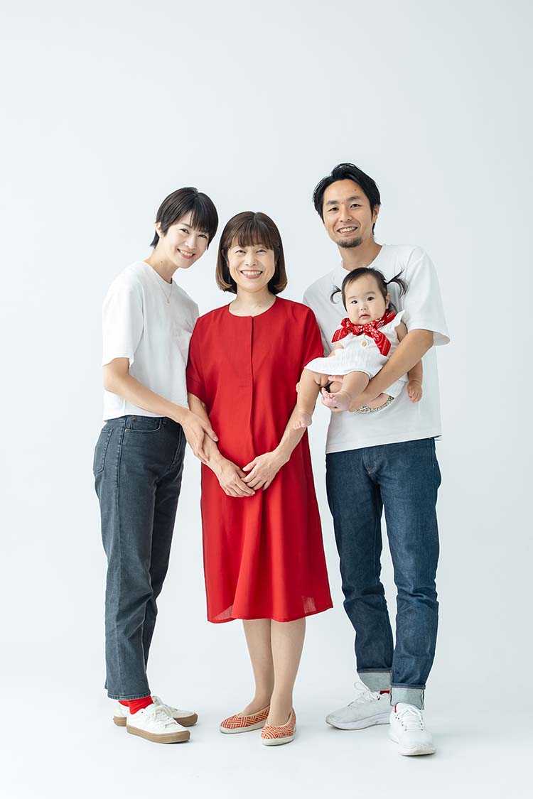 お母様の還暦祝いに、ご夫婦とお孫さんの三世代で写真撮影。