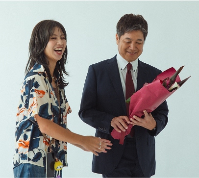 の声とともに花束を手渡された瞬間、照れくささと嬉しさが入り混じった、最高の笑顔がこぼれました。