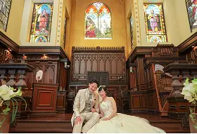「結婚式はしないけれど、挙式のような写真を残したい」というロマンチック派のおふたりには、石造りやステンドグラスが美しいチャペルがおすすめ。