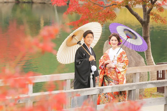 名古屋周辺のロケーションスポットで撮影する和装プラン。思い出の場所など、お好きな場所で撮影できます。