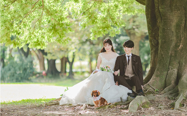 特別サイズや、ご妊娠中でサイズにご心配がありましたら、事前にお問い合わせください。 - はい、可能です。おふたりの大切なご家族様の一員として撮影させていただきます。